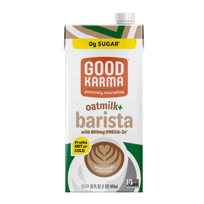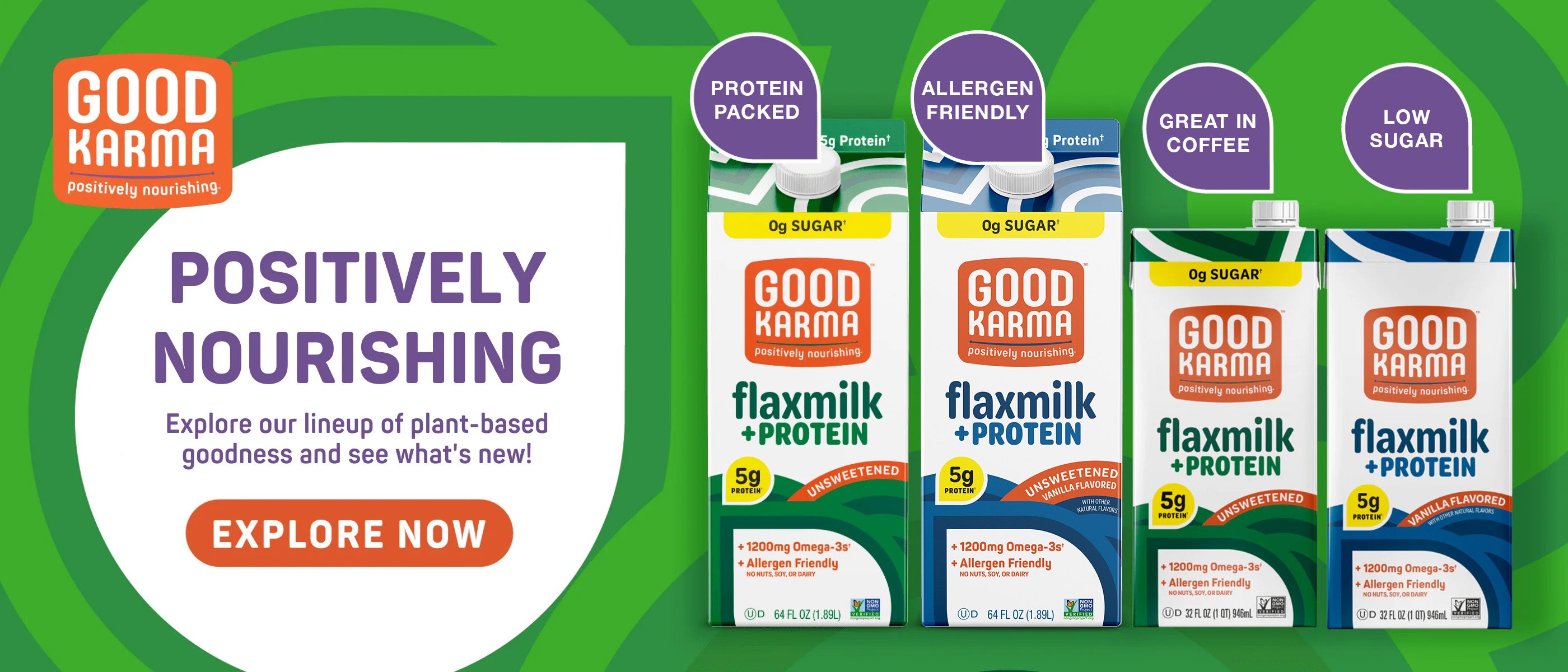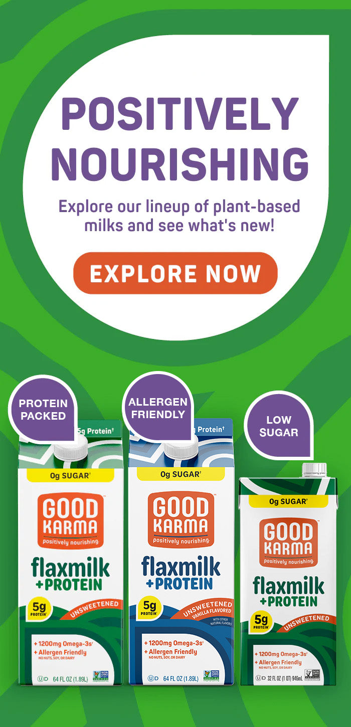 Good Karma Flaxmilk is our family’s first choice when buying dairy- and nut-free milk. It’s well balanced, smooth, creamy, and refreshing.